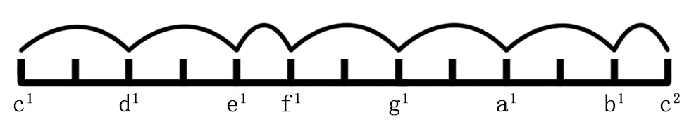 将一个纯8度(如c1-c2)的频率平均分成12份,每一份称为一个半音,两个半音组成一个全音。